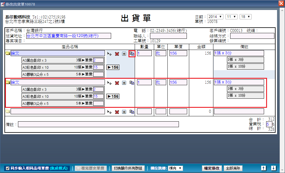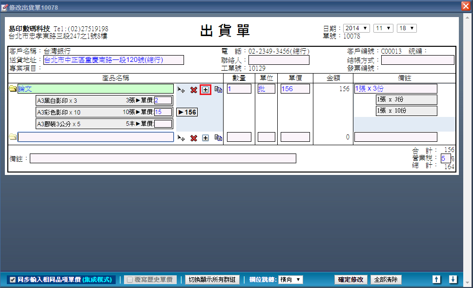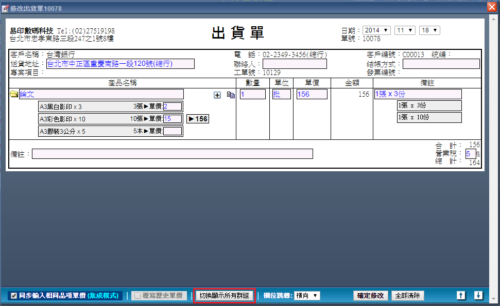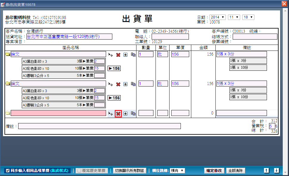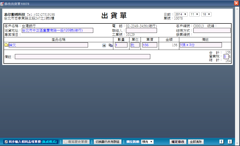 出貨單內容編輯操作