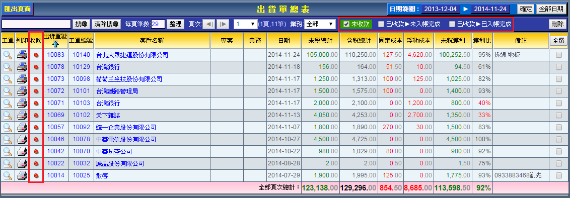 | | 2. 收款條件搜尋:在搜尋功能列的「收款狀態」勾選您要搜尋的條件,界定好了之後便可依此條件做出搜尋。 |