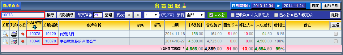 出貨單搜尋操作