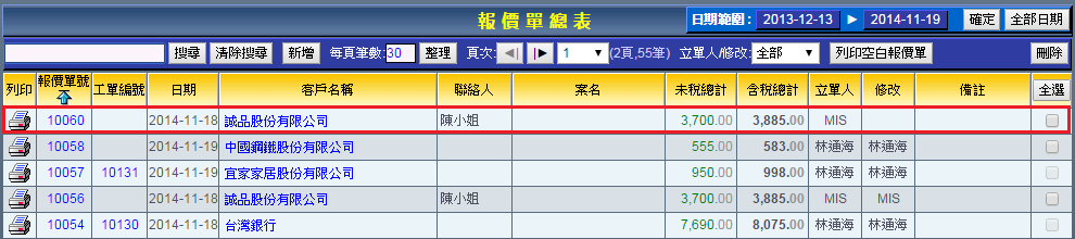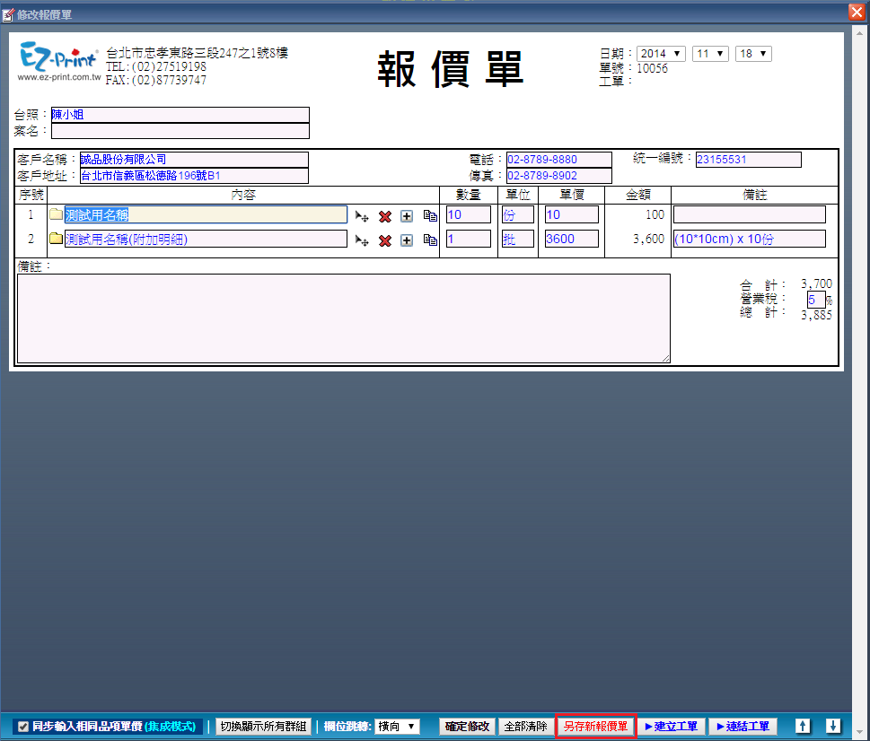 2. 按下後您可以立即看到另存後的報價單,會立即出現在報價單總表區檢視到另存好的報價單。
