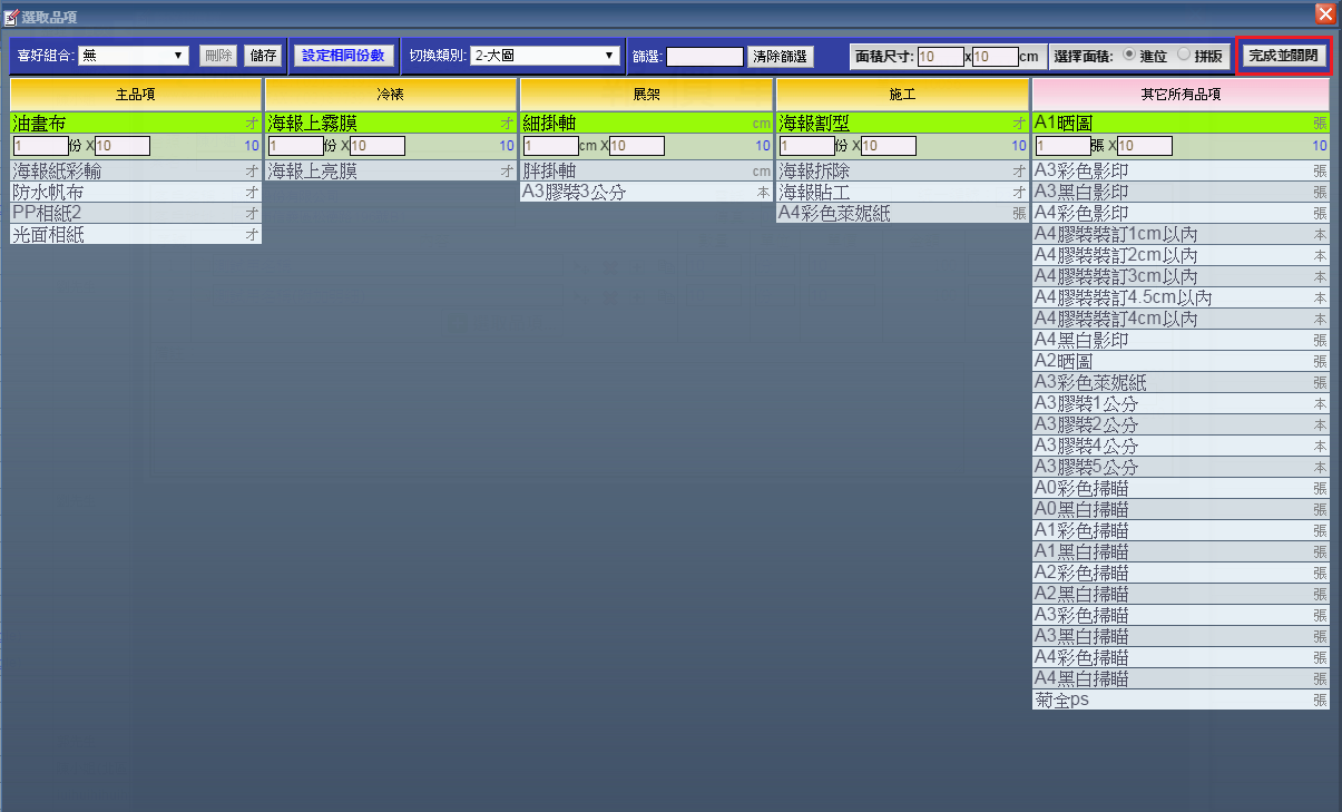 | | 12. 確定所有資料都正確後,點選右上角「完成並關閉」退出品項選單。 |