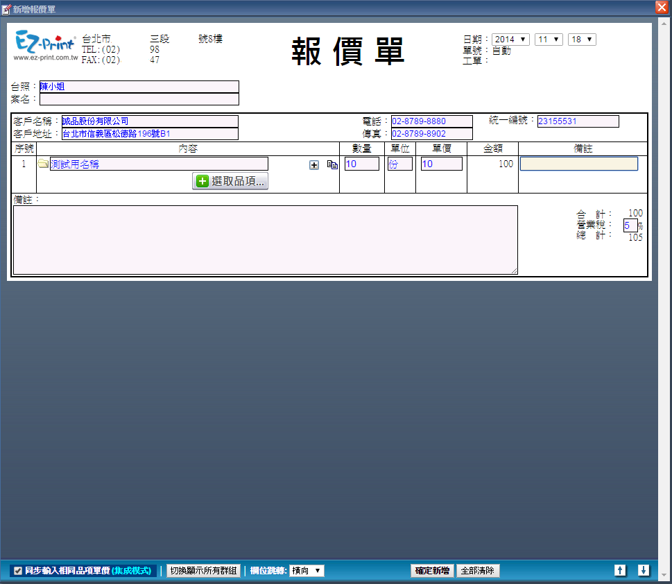 報價單開立