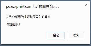| | 2. 點選後即會彈出詢問是否確定刪除勾選品項的視窗,選擇「確定」即可將所選擇的品項永久刪除。 |