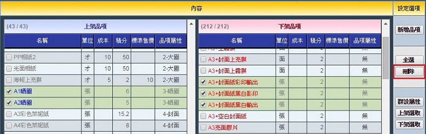 品項的上架與下架操作
