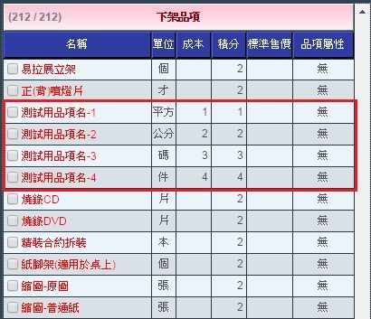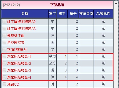| 6. 確定後即可看到剛勾選的品項已移至「下架品項」區。