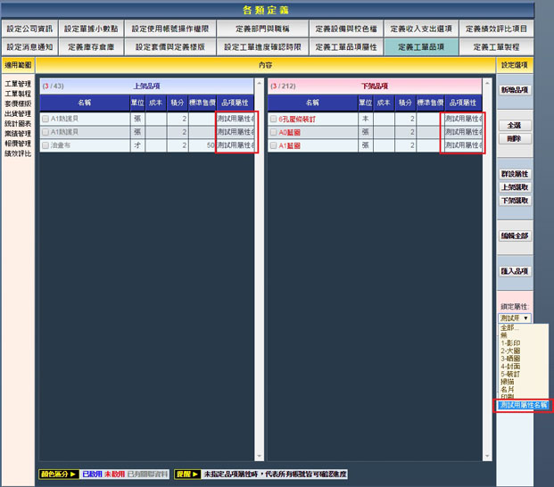| 3.確定修改後即可看到您勾選的品項被歸類的屬性類別 。 |