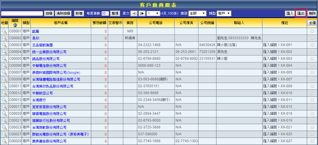 客戶總表的匯出操作