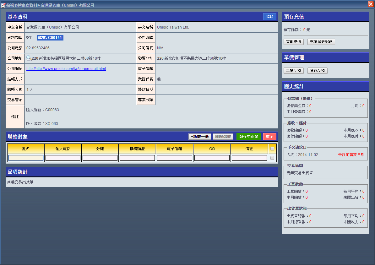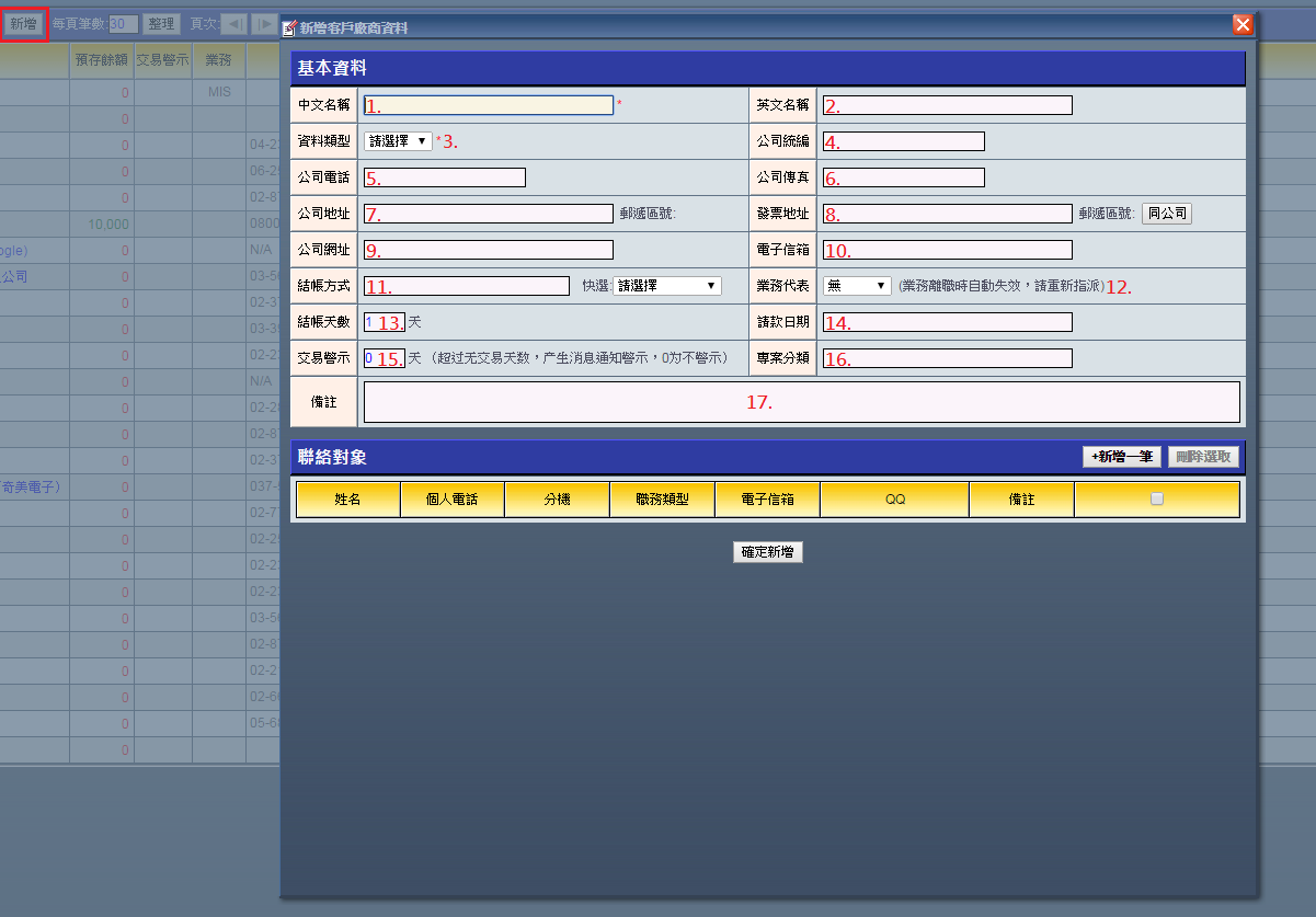 新增客戶廠商資料