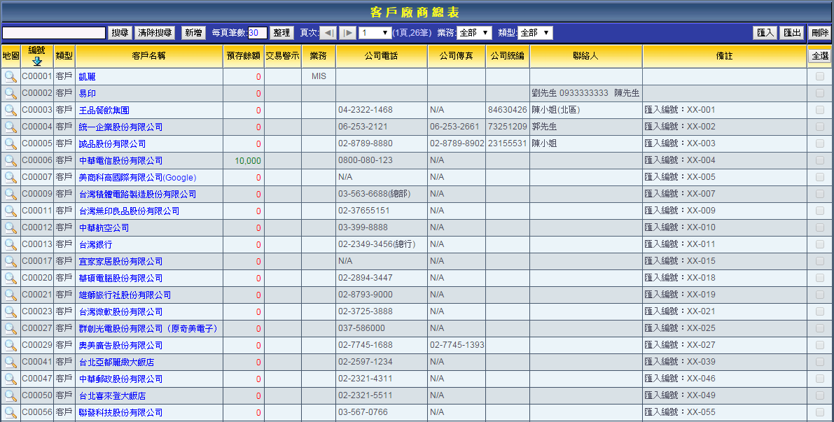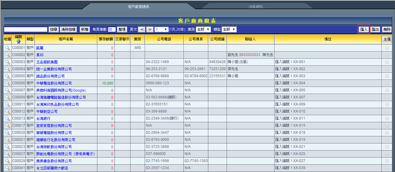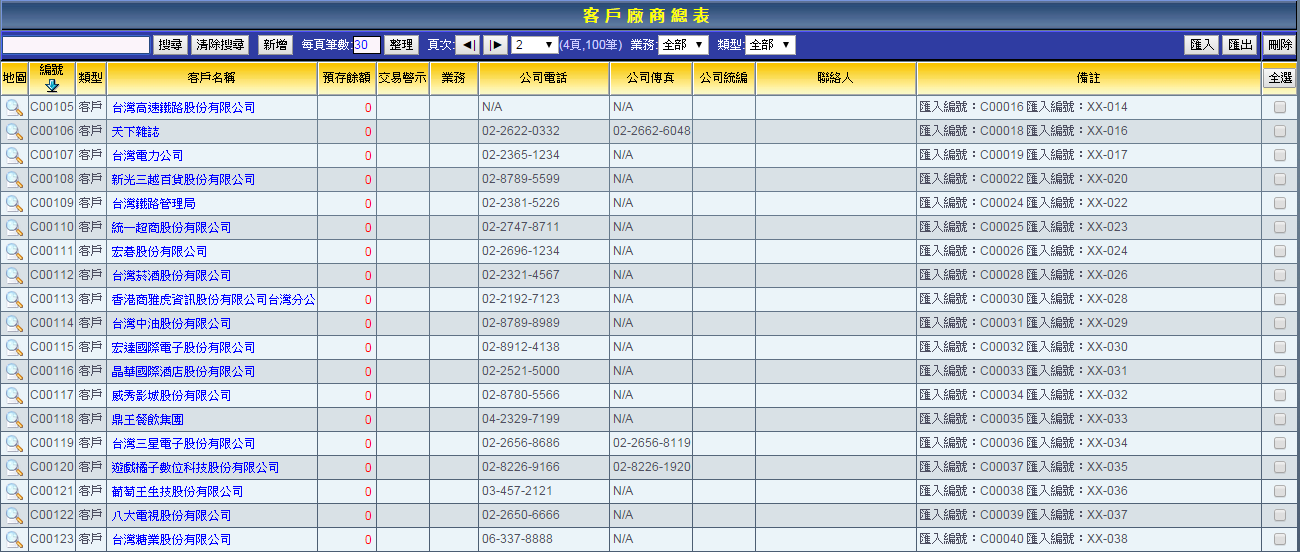 ※請注意:客戶廠商資料一經刪除後便無法回復,請謹慎操作。 |