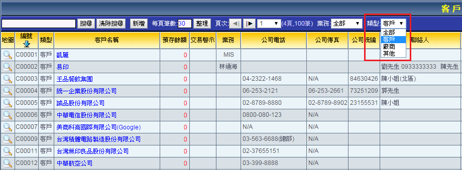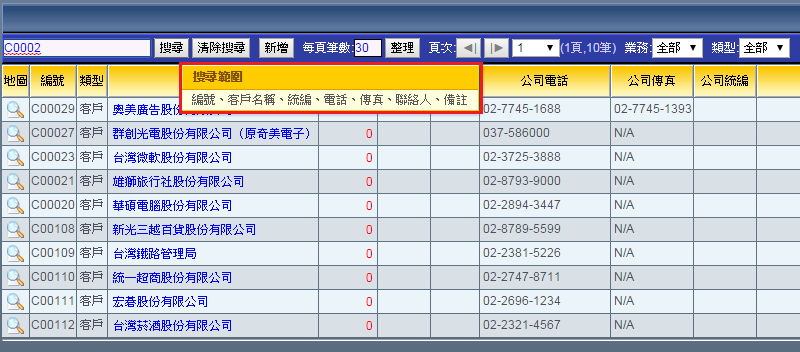 客戶廠商搜尋相關操作