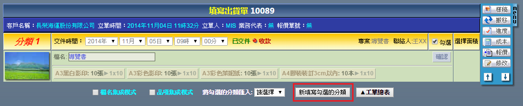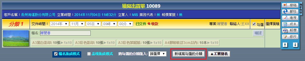 |  | | 1. 勾選「檔名集成模式」後,點選「新填寫勾選的分類」。 |