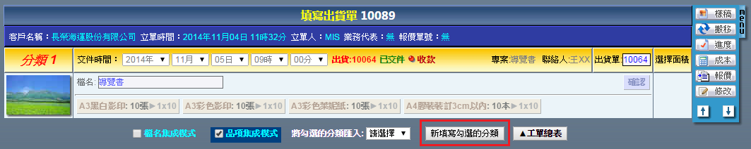 |  | | 1. 勾選「品項集成模式」後,點選「新填寫勾選的分類」。 |
