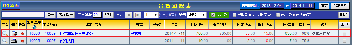 | 3. 儲存完後會自動跳轉至出貨單總表,您可以看到「出貨單號」「工單編號」等出貨單資訊。此時代表工單已順 利轉換為出貨單。 |