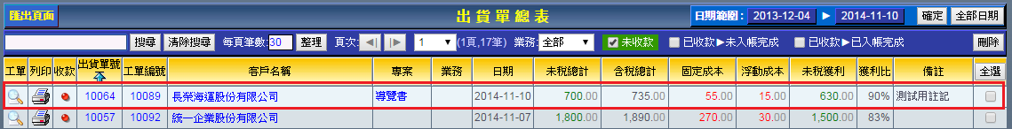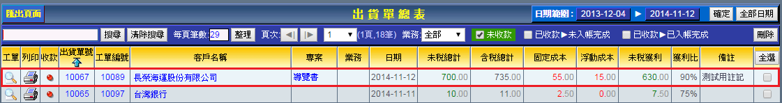 | 3. 儲存完後會自動跳轉至出貨單總表,您可以看到「出貨單號」「工單編號」等出貨單資訊。此時代表工單已順利轉換為出貨單。 |
