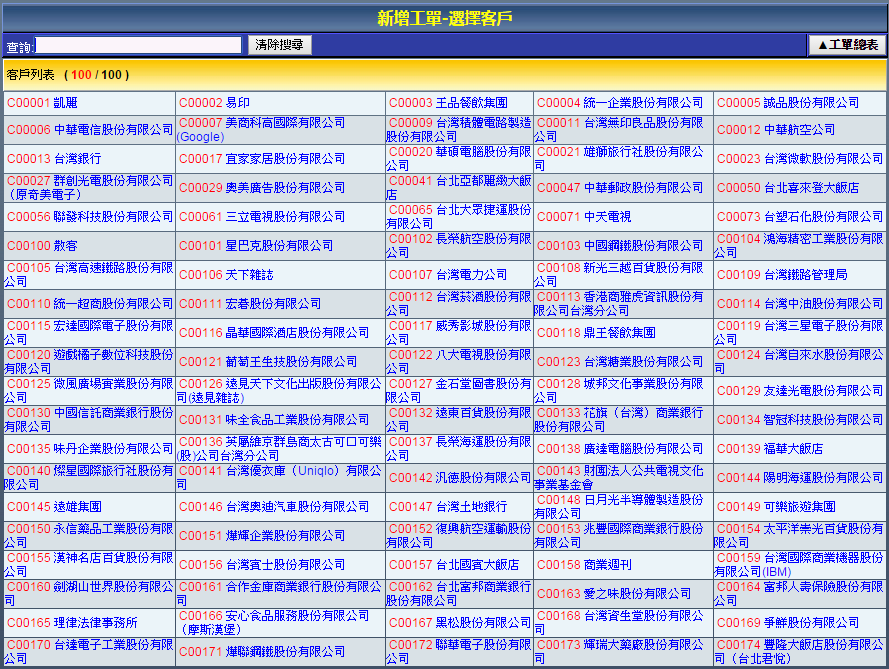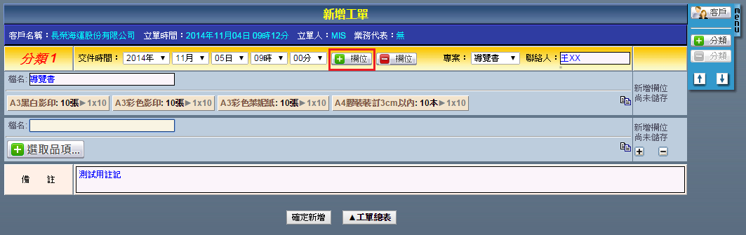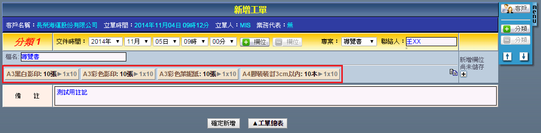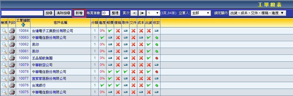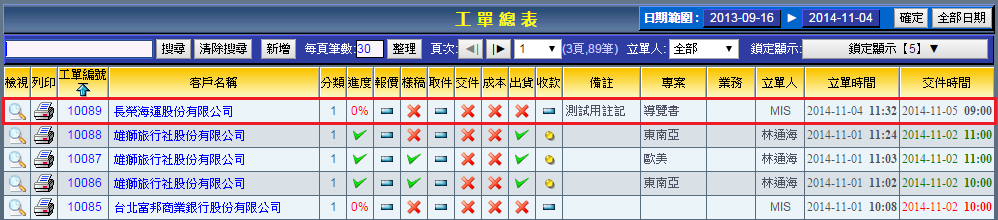 | 8. 確定後即可在工單總表上看到本次開單的相關資訊。 |
