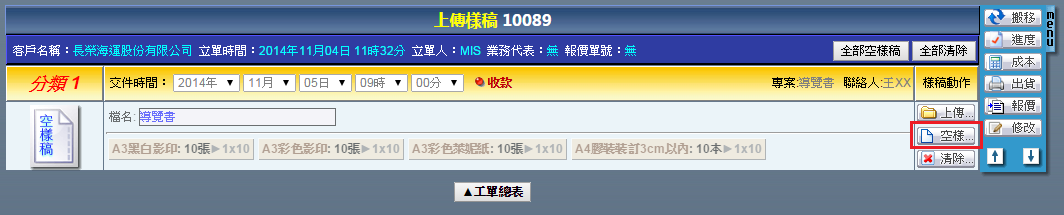 | | 3. 若本工單要採用空樣稿處理,點選「空樣稿」即可完成。 |