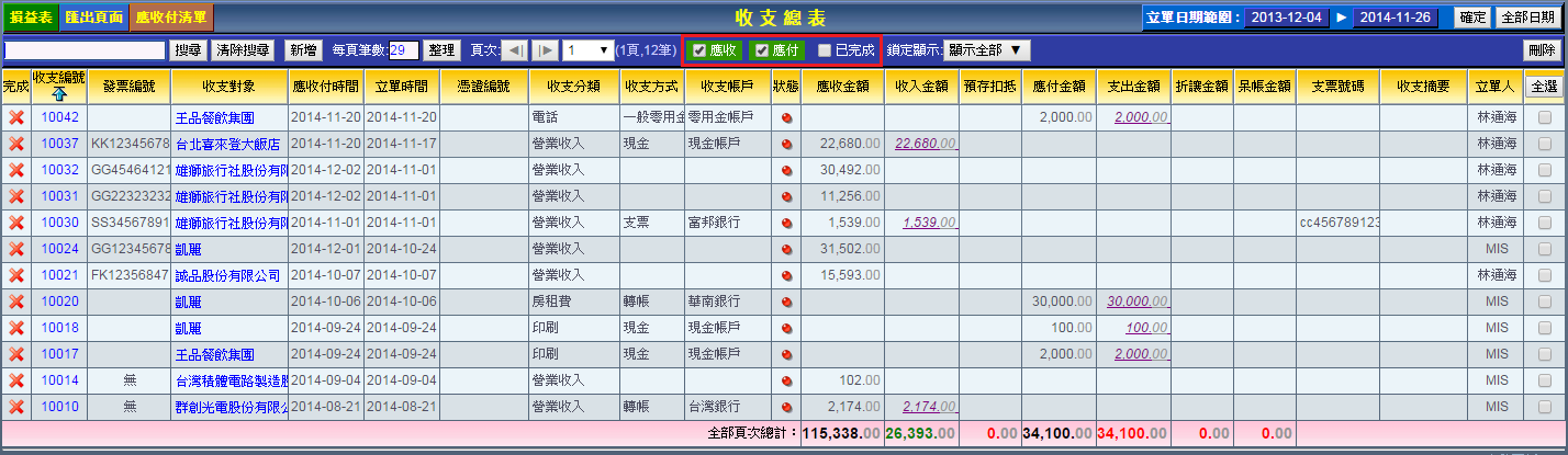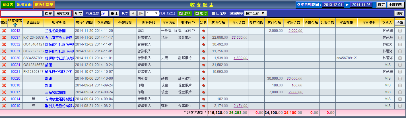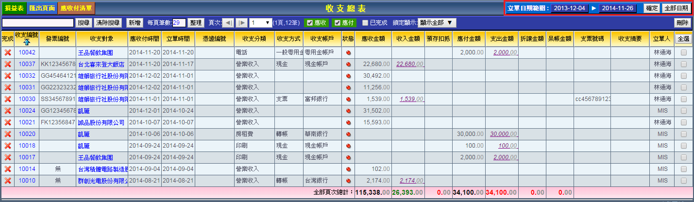收支表搜尋操作