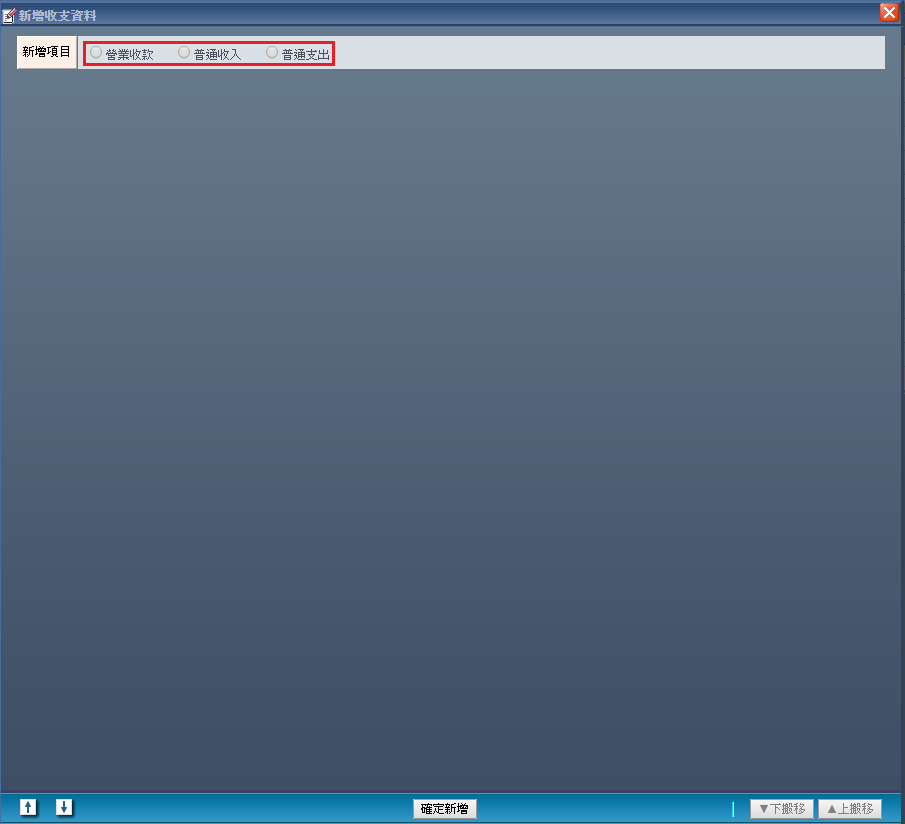| | 2. 點選新增後進入新增頁面,請先選擇本筆收支表的類別。 |